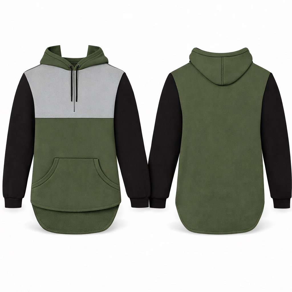 Olive Green, Light Grey & Black | Half Zip Long Tail Hoody