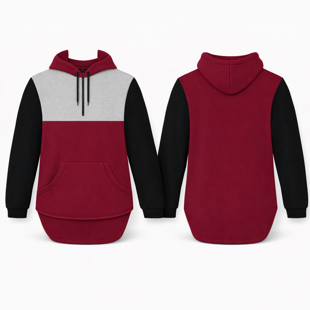 Maroon, Black & Grey | Half Zip Long Tail Hoody