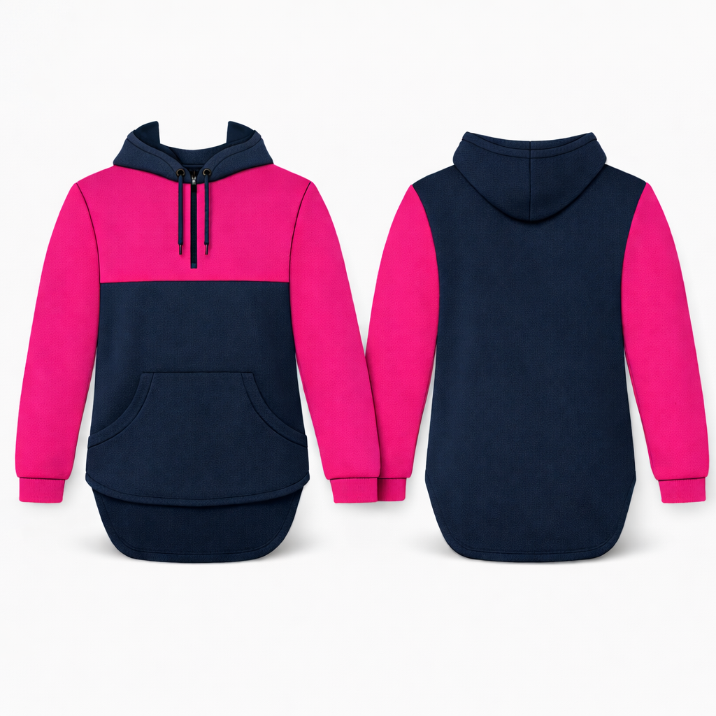 Hot Pink & Navy Blue | Half Zip Long Tail Hoody